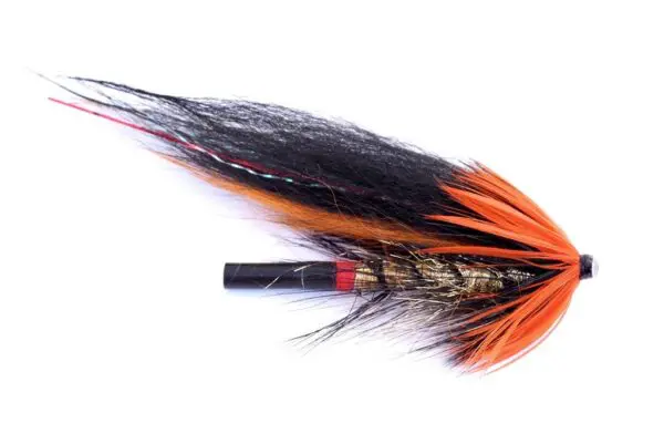 Taattujen Itämeren lohen suosikkivärejä painotetussa putkessa. Kymijoen, Mörrumin tai minkä vaan humuksisen ison joen ottiperho.