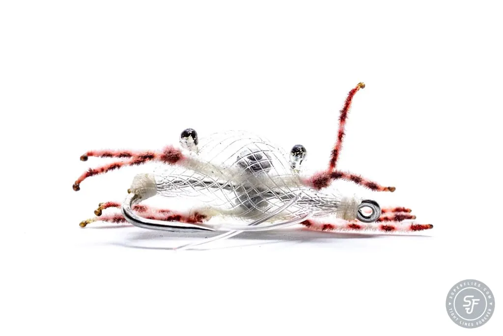 The one and only Alphlexo Crab. The extra premium-tied Alphlexos are exactly the same ones as invented and used on the legendary Alphonse island. Saltwater fly anglers don’t need much more introduction… Choose sizes #2 and #4 especially for Atlantic permit fishing in the Caribbean, Florida Keys and Yucatan, where permit grow larger on average than their Indo-Pacific cousins. As a bonus, these larger sizes are killer flies for triggerfish. Size #8 is perfect for Indo-Pacific permit in Seychelles and elsewhere, and our secret weapon for bonefish. Remember to match the fly color with the surroundings! Tied on a Gamakatsu SL11 saltwater hook. More colors available in our other Alphlexo Crab model.