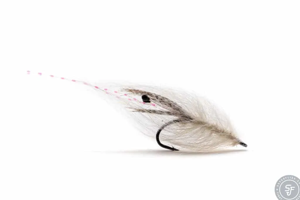 A natural gray shrimp with lively materials, crowned by the longer flash fibers acting as antennae or “feelers”. Tied on Partridge Cs54. Also available Olive Hotspot GammarusNatural Shrimp
