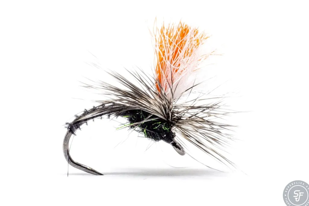 A take on the famous Klinkhämer Special boasting a grizzly hackle and a hi-viz wing alongside with a slim body. Tied on an Ahrex FW525 barbless hook