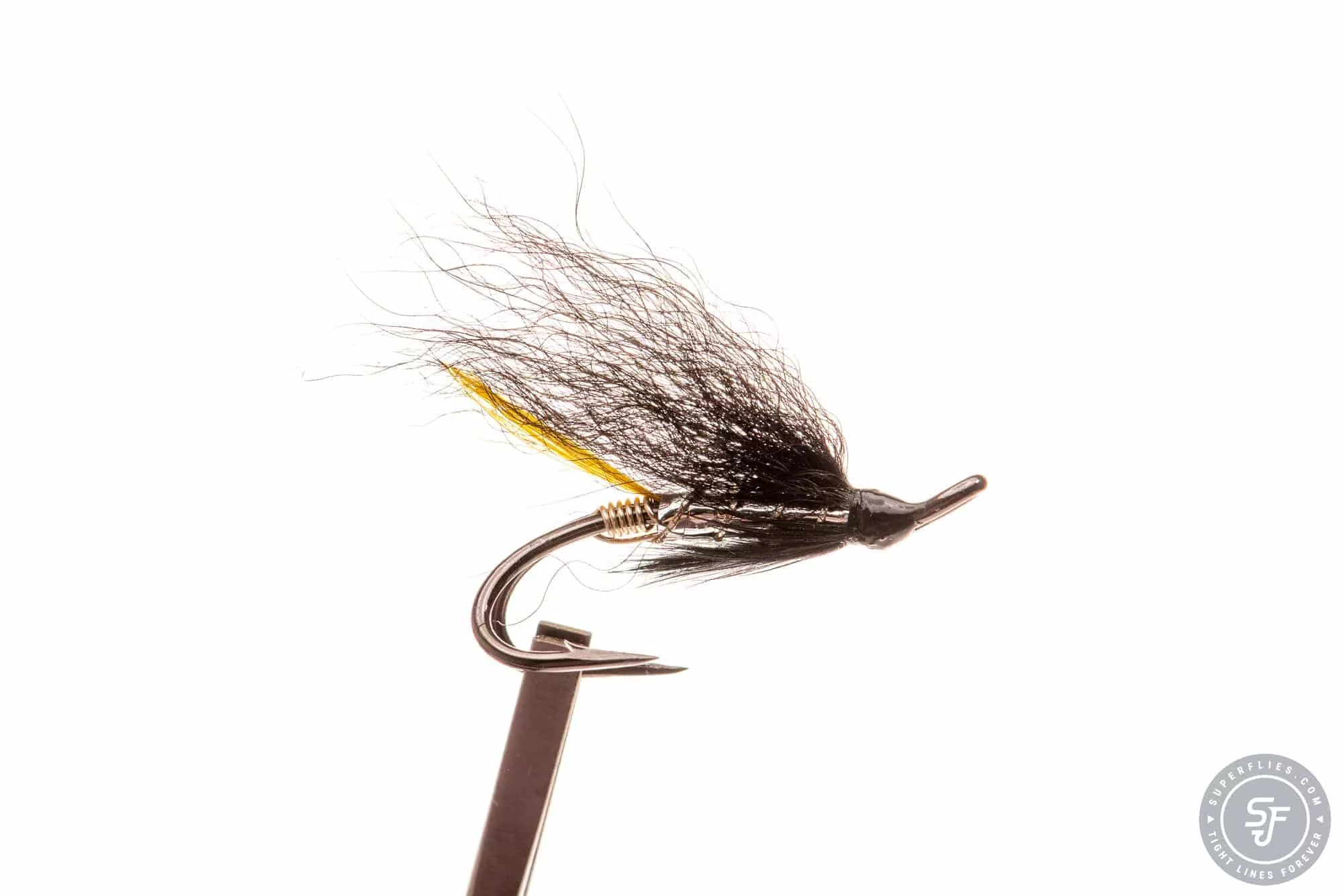 Check out Superflies owner Jasper Pääkkönen’s tips for using the Silver Stoat’s Tail: “A bread-and-butter fly for all Nordic rivers – the silver-bodied Stoat’s Tail is simple but effective. Choose a small size, say #12, cast 45 degrees downstream and strip as fast as you can with short, sharp strips. During midsummer and late season this can be a lethal technique.” Tied on a Mustad DL71U hook.